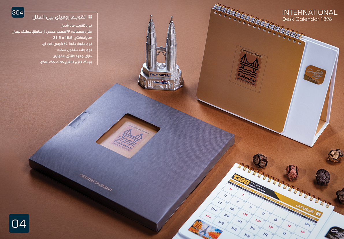 تقویم رومیزی 98 بسیار خاص -دارای جعبه کادویی و پلاک فلزی استیل